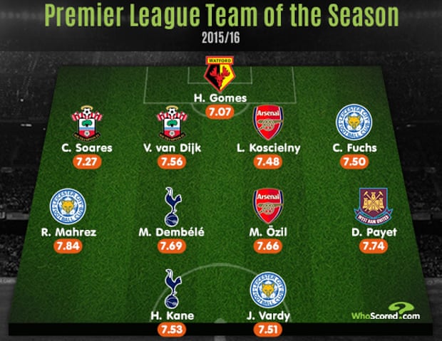 Znany portal Whoscored.com, który zajmuje się prowadzeniem statystyk w świecie futbolu, przedstawił najlepszą jedenastkę Premier League sezonu 2015/16.